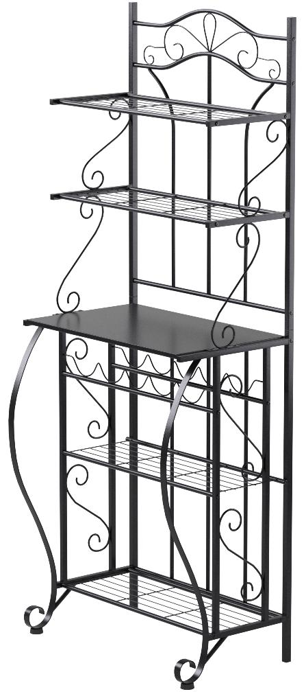 5 Tier Black Metal Cappuccino Finish Shelf Kitchen Bakers Rack Scroll Design With 5 Bottles Wine Storage Amazon Ca Home